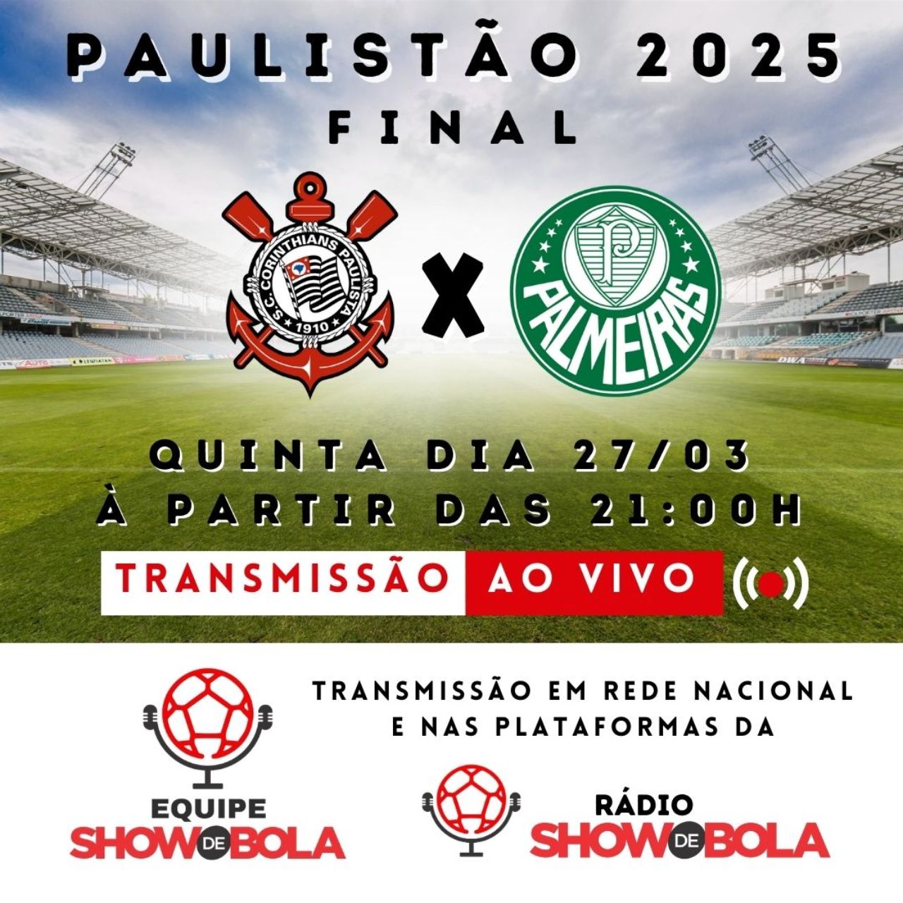 Acompanhe hoje dia 27/03/2025 a partir das 21:00h nas Midias Sociais da Rede Show de Bola