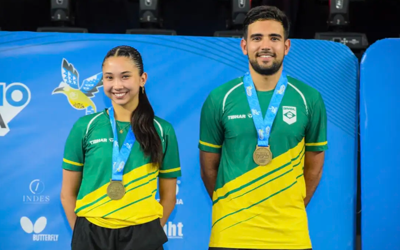 Contrariando as expectativas, Giulia Takahashi e Guilherme Teodoro foram campeões nas duplas mistas do Pan-Americano de Tênis de mesa, em El Salvador, após vencerem de virada os experientes compatriotas, Hugo Calderano – número 6 do mundo - e Bruna Takahashi (19ª), irmã de Giulia. Após saírem atrás no placar, Guilherme (173º no ranking) e Giulia (92ª) travaram uma batalha acirrada para garantir a virada e a medalha de ouro, até vencerem por 3 sets a 2 (parciais de 5/11, 11/7, 11/9, 5/11 e 11/6). O casal Calderano e Bruna, namorados fora de quadra, ficaram com a prata. O Pan-Americano segue até domingo (20), com transmissão ao vivo no canal da Federação Internacional de Tênis de Mesa (ITTF, na sigla em inglês).